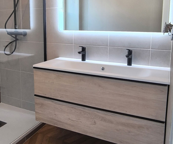 Présents à Hennebont, ainsi qu’à Plouay, Lanester, Quimperlé, Lorient et Larmor-Plage, nous concevons un espace de bien-être, pensé pour vous et votre famille. Qu’il s’agisse de remplacer une baignoire, d’installer une douche à l’italienne, de moderniser les meubles ou d’optimiser l’efficacité énergétique, nous créons une salle de bain harmonieuse et pratique.